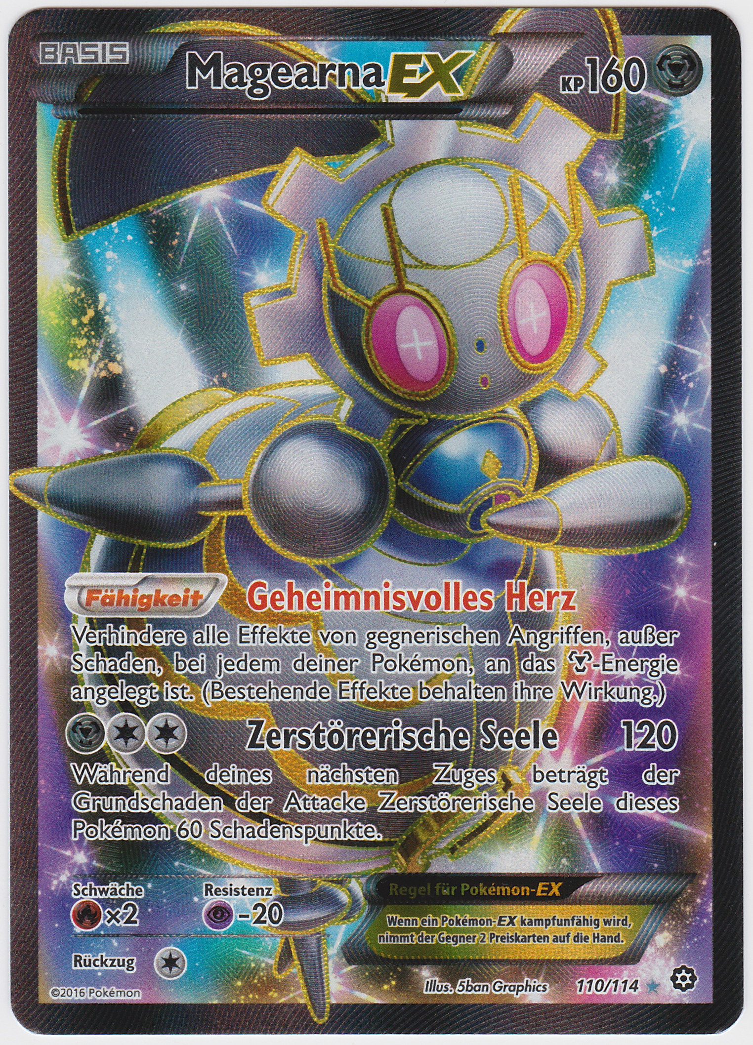 - M Sein mechanischer Körper ist nur ein Gefäß. Das eigentliche Pokémon ist eine künstlich erschaffene Seele namens „Seelenherz“.