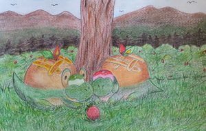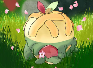 - K Es ernährt sich hauptsächlich von süßen Äpfeln, verspeist jedoch auch kleine Käfer-Pokémon, die von seinem süßen Nektar angelockt werden.