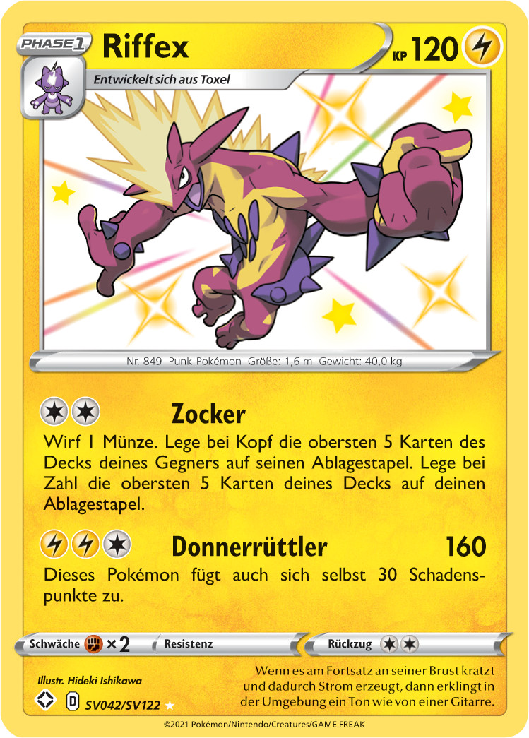 - SW Dieses Pokémon kann 15 000 V starke Elektrizität generieren. Es nimmt keinen Gegner wirklich ernst.