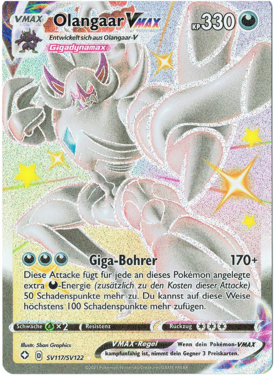 Gigadynamax-Olangaar durchführen, wodurch sich seine Form, Attacken sowie die Höhe der KP (in Abhängigkeit seines Dynamax-Levels) ändern. Diese hält, wie auch die Dynamaximierung, lediglich für drei Runden im Kampf an, sodass es nach Ende dieser Zeit wieder in seine Ursprungsform zurückkehrt.