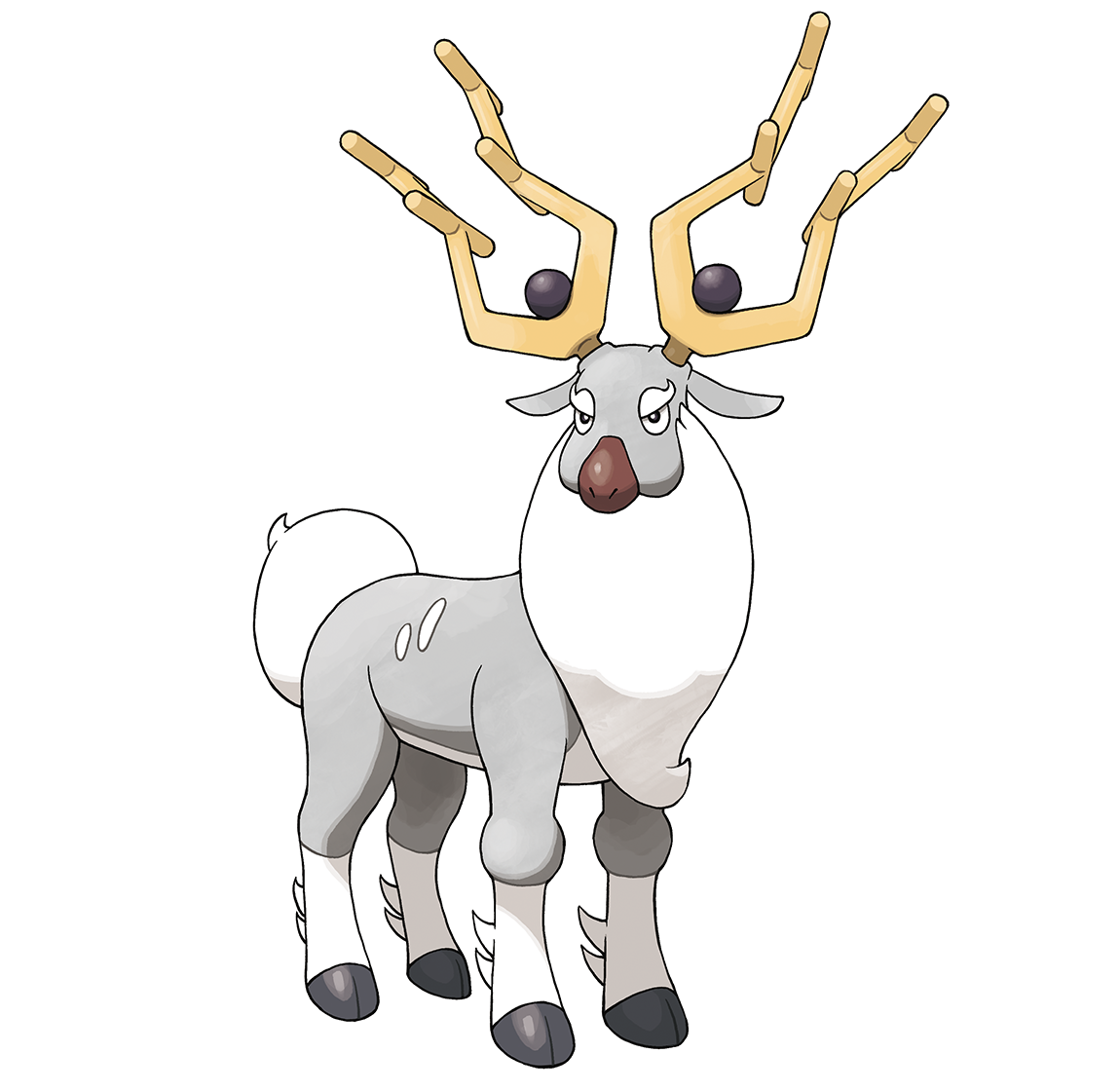 Mit den schwarzen Kugeln an seinem Geweih erzeugt dieses Pokémon Psycho-Kräfte, die mächtig genug sind, um den Raum zu verzerren. Damythir macht sichere Wege ausfindig, indem es sein Geweih als Antenne benutzt. So führt es seine Herde aus jungen Damhirplex an.