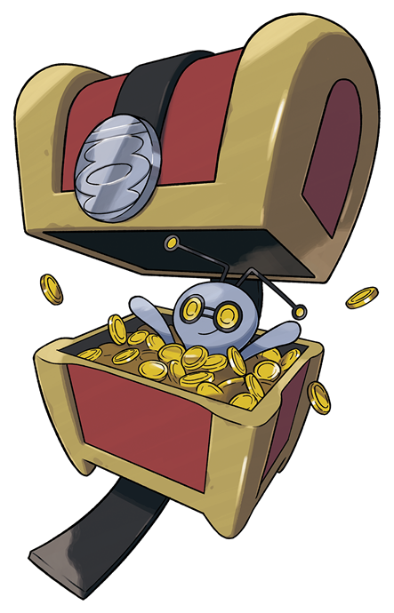 - P Es haust in einer alten Schatztruhe und landet manchmal bei Antiquitätenhändlern in der Ladenecke, da man es nicht als Pokémon erkennt.