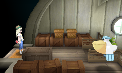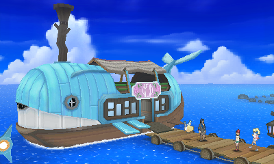 Geht man in SM in das Hausboot links unten in der Stadt, trifft man dort auf zwei Personen, die einen Laden eröffnen wollen. Dieser ist leider noch nicht fertig. Sprecht ihr daraufhin das Mädchen hinter dem Regal an, schenkt sie euch daraufhin ein