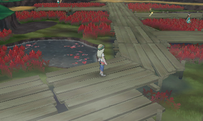 Außerdem findet sich im Nordosten des Blumenmeeres eine Anbindung an den Sonnenkreis-See (Pokémon Sonne S) oder den Mondscheiben-See (Pokémon Mond M).