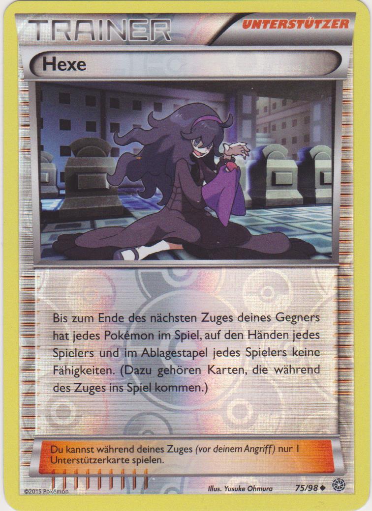 Auch diese Karte ist mittlerweile etwas verschwunden, dennoch sehr gefährlich für unser Deck. Durch die Fähigkeit “Rebell-Puls” sind wir gezwungen, den Unterstützer Hexe zu spielen um mit Mega Rayquaza EX Schaden anzurichten, da das Giratina EX vor Angriffen durch Mega-Entwicklungen geschützt ist. Ansonsten hätten wir die Option, mit unserem normalen Rayquaza EX anzugreifen oder ggf. mit anderen EX, je nachdem wie unsere Deckliste aufgebaut ist.