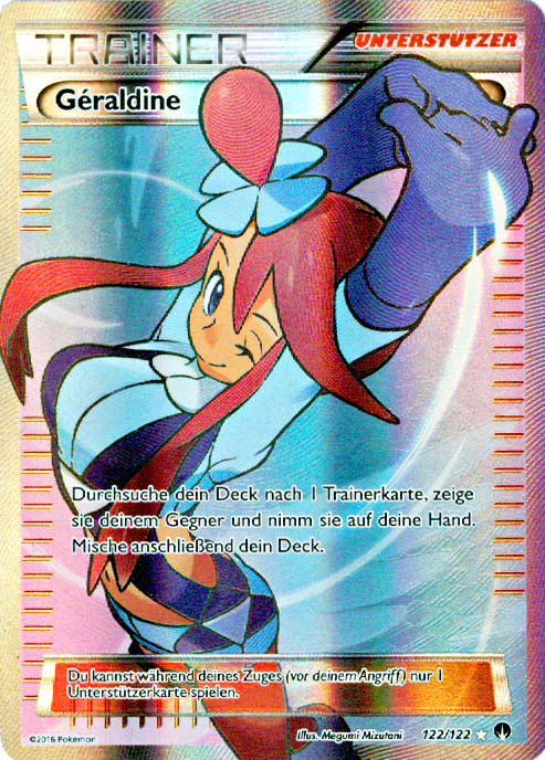 Sehr hilfreiche Karte, wird meistens benutzt um gegnerische Doppel-Farblos-Energien vom Spielfeld zu entfernen und gibt einem selber mehr Zeit sich aufzubauen.