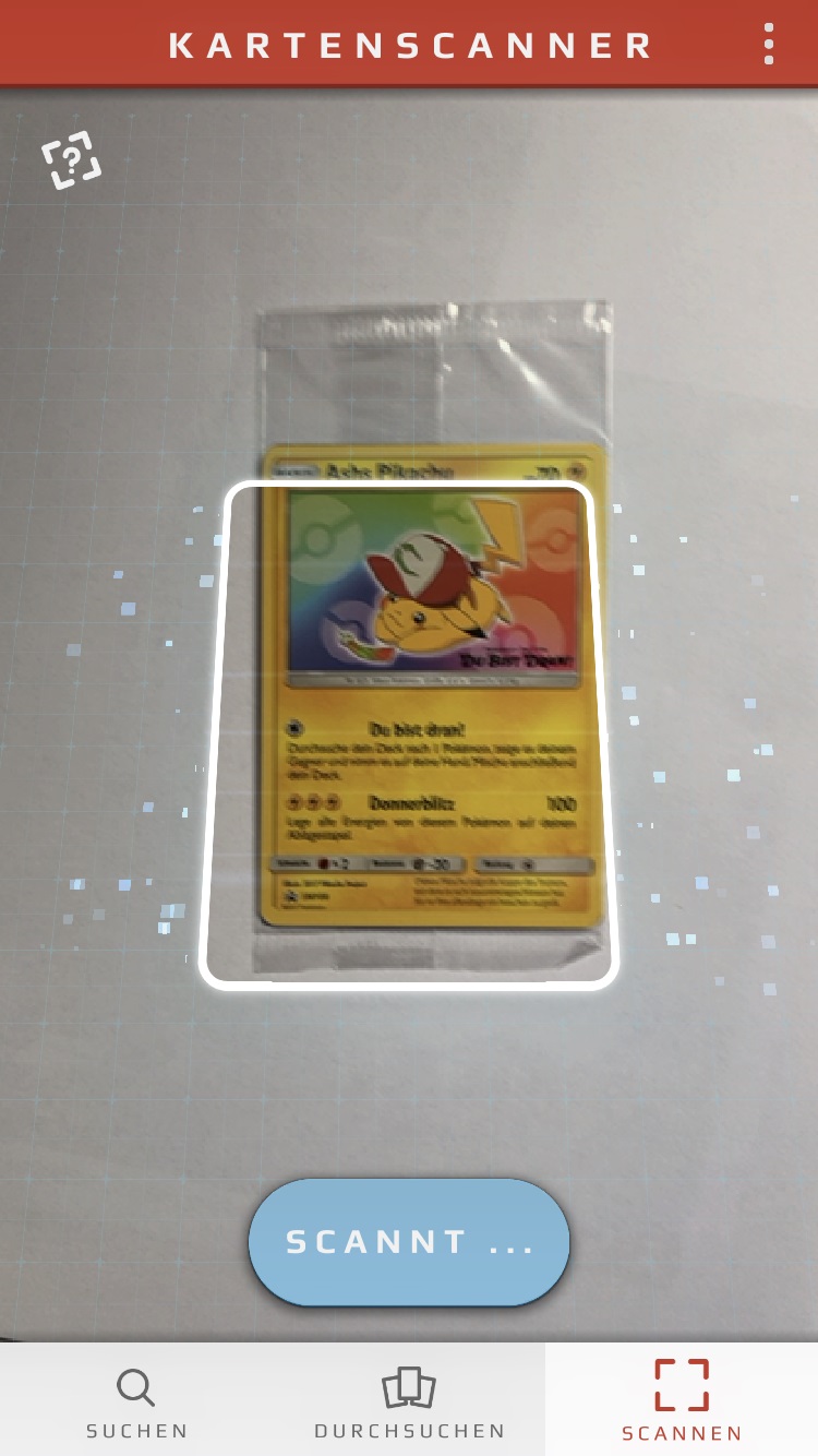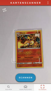 Im weißen Menüband der App unten im Bildschirm findet ihr den Menüpunkt „Scannen“. Hier könnt ihr Sammelkarten einscannen und von der App automatisch erkennen lassen. Dazu solltet ihr aber beachten, dass ihr