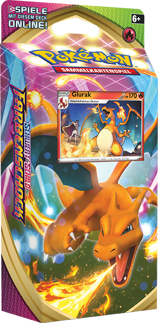 Begleitend zur Erweiterung Schwert & Schild - Farbenschock gibt es zwei Themendecks, die im Zeichen von Glurak und Kamalm stehen.