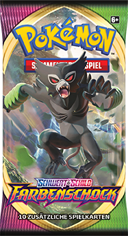 Schwert & Schild - Farbenschock ist die vierte Erweiterung im Schwert & Schild-Zyklus. Insgesamt sind 203 Karten in diesem Set enthalten, darunter 11 Pokémon-V, sechs Pokémon-VMAX, mehr als 15 Trainerkarten und vier neue Spezial-Energiekarten. Zudem gibt es wie üblich zwei Themendecks sowie eine Top-Trainer-Box zu diesem Set.