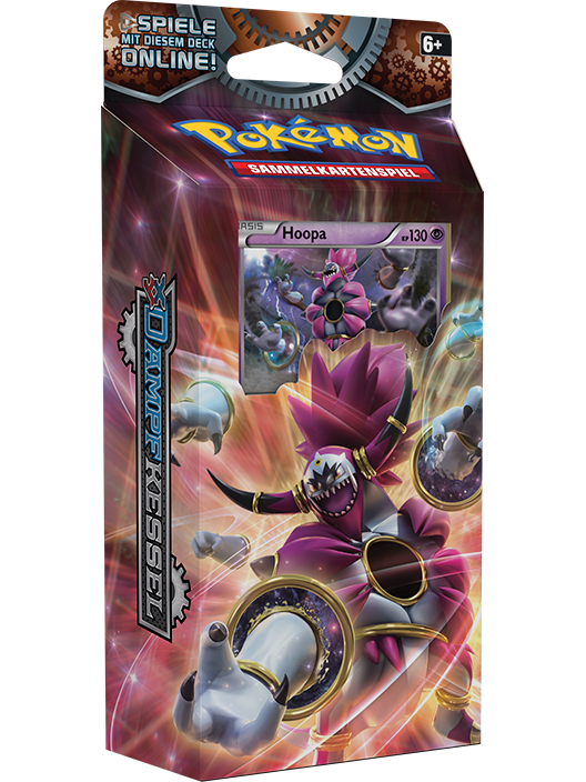 Die Karten in diesen Decks featuren Volcanion (Feuerrad) und Hoopa (Blitzring).