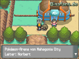 unten rechts befindet. Links vom Pokémon Center ist Norberts Arena, die jedoch momentan blockiert wird. Ein Verlassen der Stadt nach rechts