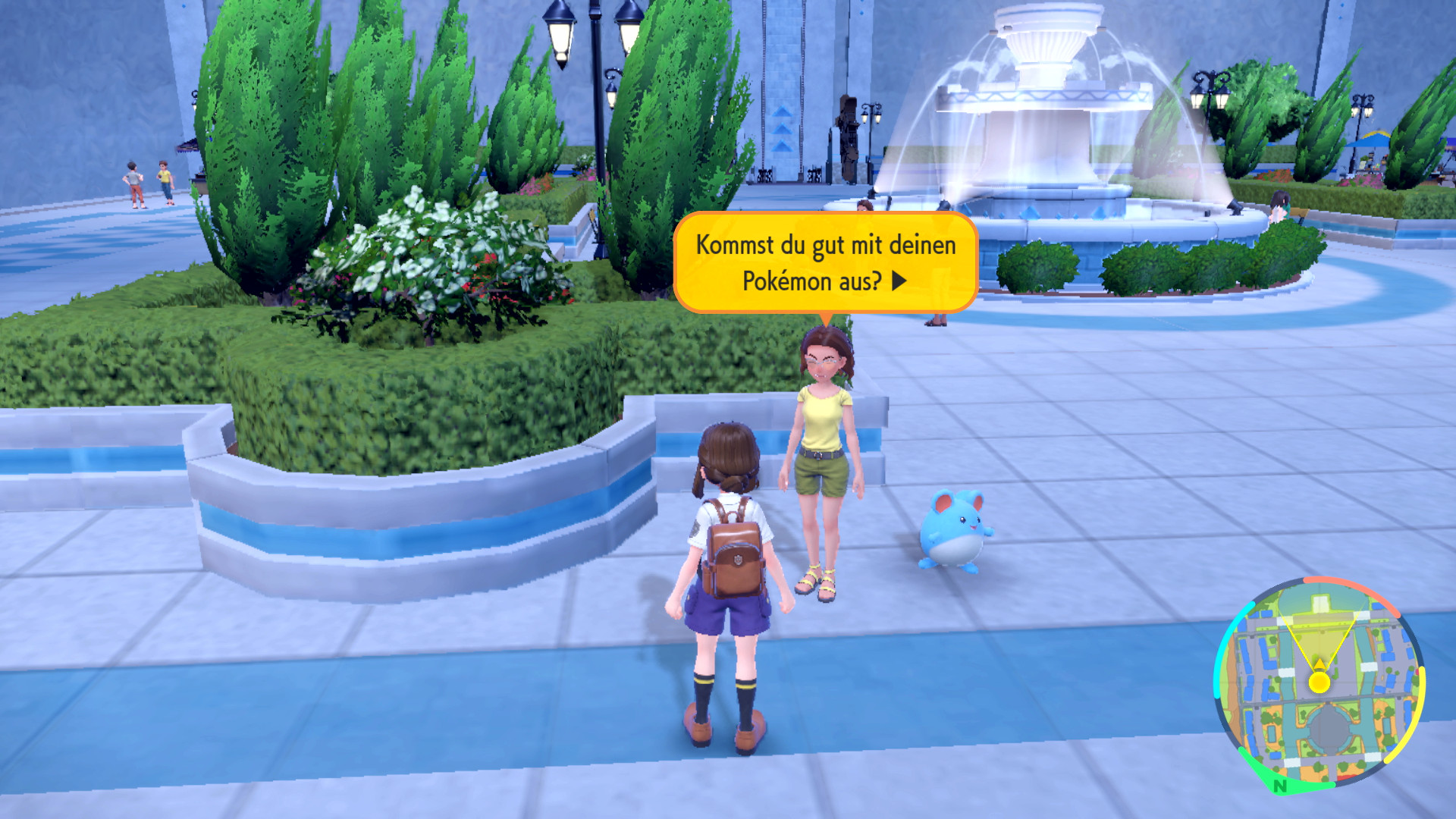 Vor dem großen Springbrunnen auf der mittleren Ebene von Garrafosa-city steht eine junge Dame, die den Zuneigungswert eures Pokémon beurteilen kann. Ist dieser Wert maximal, erhält euer Pokémon ein Zutraulichkeitsband: