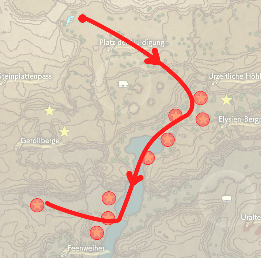 Die Bäume können mit Hisui-Washakwil in zwei langen Flügen vom Basislager aus gut erreicht und dann kurz abgeflogen werden. Dieser Route kann deshalb recht schnell auf wackelnde Bäume untersucht werden. Da es jedoch nur wenige Bäume im Zielgebiet gibt, ist es wahrscheinlich nötig sehr häufig diese Route zu fliegen, bis man auf einen wackelnden baum trifft. Außerdem kann es passieren, dass ein Pachirisu in den Bäumen gefunden wird.