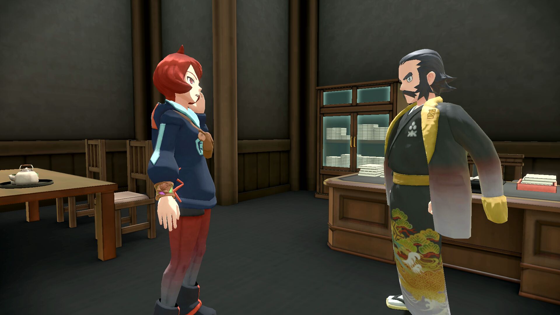 Im Galaktik-Hauptsitz finden wir Hinatsu schließlich wieder im zweiten Stock. Sie berichtet davon, dass Ursaluna in Rage verfallen sei, obwohl es sich bei diesem Pokémon um keinen König oder eine Königin handelt. Das ist natürlich äußerst beunruhigend, wenn auch andere Pokémon von diesem Phänomen betroffen sind. Auf Denbokus Anweisung hin sollen wir die Lage im Roten Sumpfland untersuchen und die Perl-Clan-Wächterin Yugao in den Ruinen des Trostes aufsuchen. Mit dieser Aufgabe beginnt die achte Hauptmission.