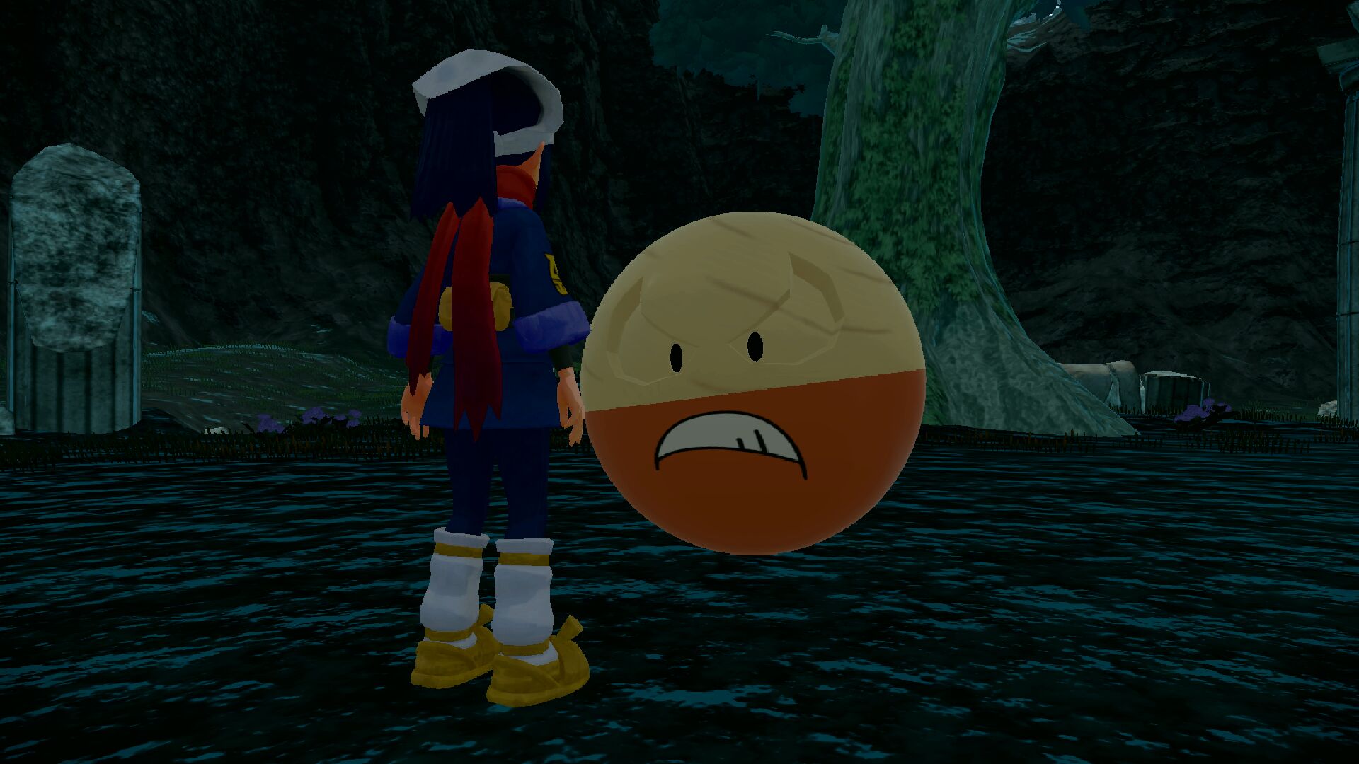 Vor dem Eingang zur Bizarren Höhle werden wir jedoch von Tsubaki aufgehalten. Er sieht es als seine Aufgabe an, Lektrobal weiter wüten zu lassen, da der Blitz aus dem Himmel offenbar vom Ehrwürdigen Sinnoh stamme. Er verabschiedet sich noch, bevor wir ihn aus seiner eigenen Welt aufwecken können, aber der Weg ist nun wieder frei.