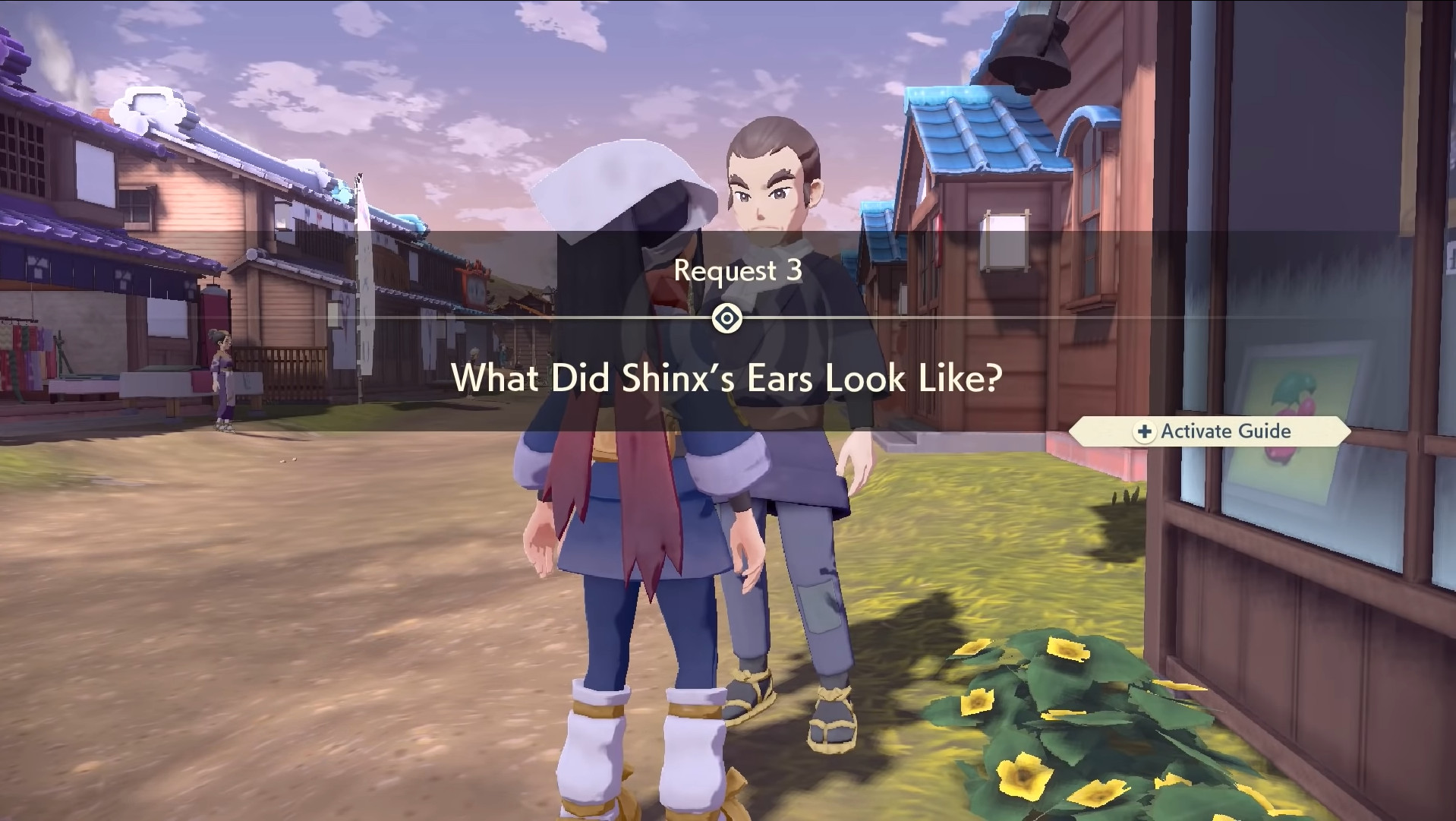 - Beschreibung: Toshi möchte, dass du ihm ein Sheinux zeigst, denn er kann sich nicht mehr daran erinnern, wie die Musterung an den Ohren dieser Pokémon-Art aussieht.