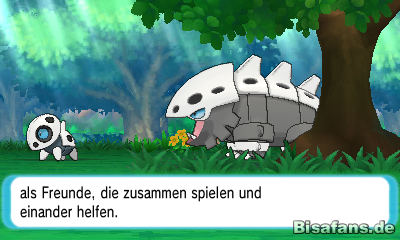 Habt ihr das Poémon besiegt, bedankt sich Birk bei euch und führt euch gleichzeitig in sein Labor, das ihr zuvor leer aufgefunden hattet. Dort schenkt er euch aus Dankbarkeit jenes Pokémon, das ihr für den Kampf mit Fiffyen ausgewählt habt.