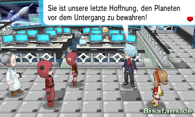 Zusammen mit eurem Rivalen schaut ihr euch schließlich das Raumfahrtzentrum an und kehrt nach Hause zurück.