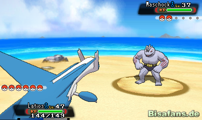 Lunastein (45) ein, die sehr viele Schwächen besitzen. Pflanzen- und Wasser-Attacken treffen die beiden Pokémon sehr effektiv und sorgen schnell dafür, dass beide ausgeschaltet werden können.