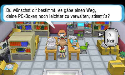 Die praktischste Funktion des Lagerrungssystem ist der Punkt Pokémon Bewegen, welcher euch erlaubt euer Team und die Boxen komplett umzusortieren und zu organisieren. Dieser Menüpunkt stand bisher immer an dritter Stelle des Auswahlmenüs, kann nun jedoch von Lanette, derjenigen, die das Lagerungssystem weiterentwickelt hat, an erste Stelle verschoben werden.