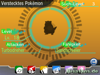 - Zeigt die Fähigkeit an, welche das Pokémon besitzt. Dies kann entweder eine normale Fähigkeit sein, oder mit einem hohen Suchlevel eine versteckte Fähigkeit.