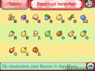 Beeren aus eurem Item-Beutel können mit Hilfe der Pokériegelbox, die ihr von Xenia in Graphitport City erhaltet, zu Pokériegeln verarbeitet werden. Diese Riegel sind kleine Süßigkeiten für die Pokémon im Team, die besondere Werte erhöhen, die für die Pokémon-Wettbewerbe von Bedeutung sind. So gibt es fünf verschiedene Attribute, die von euch durch die Fütterung erhöht werden können: