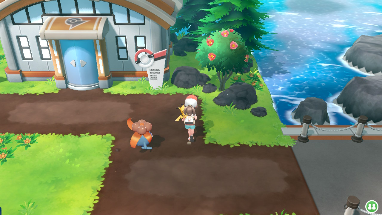 Gleich am Eingang ist die Arena, allerdings ist diese verschlossen. Von einem NPC neben dem Pokémon-Center erfahren wir, dass wohl etwas in der Pokémon-Villa ist. Um also einen Weg in die Arena zu finden, geht es in das große Gebäude mit den Ranken drum herum. Vergesst dabei aber nicht das Gegengift vor dem Gebäude links.