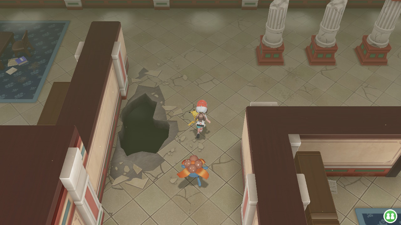 Die Pokémon-Villa bietet wie auch schon im Silph Co-Gebäude ein Rätsel an, um den richtigen Weg herauszufinden. Ihr müsst Staturen berühren, damit sich eine bestimmter Durchgang öffnet. In der Villa selbst gibt es einige Forscher und Diebe, die euch den Weg zum Schlüssel erschweren. Nehmt die große Treppe aus dem dritten Stockwerk, um in den Keller zu gelangen. Dort könnt ihr eine Treppe nach unten gehen, um dann links in einem Raum einen Geheimschlüssel zu geben. Interessant sei auch, dass einige Bücher auf den Tischen Informationen und interessante Fakten zu Kanto, dem ehemaligen Nutzen der Villa und besonderen Pokémon geben. Geht zurück aus der Pokémon-Villa und versucht, die Arena zu öffnen.
