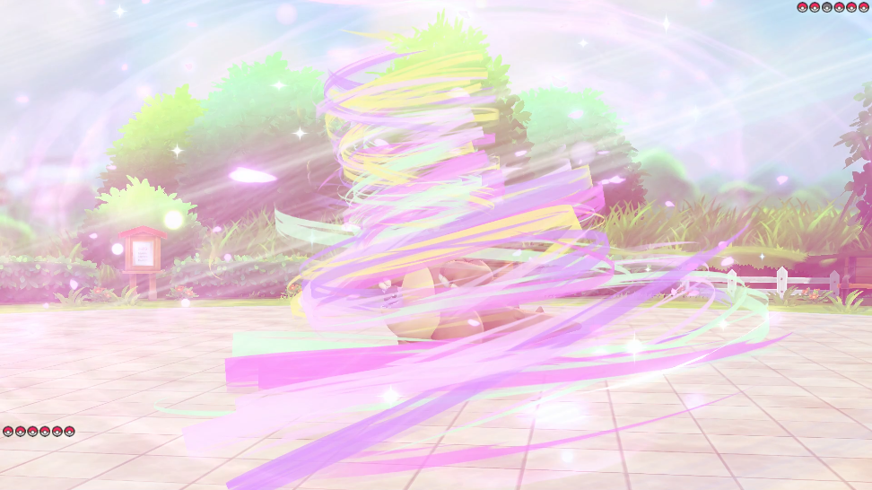 Evoli greift an, indem es das Ziel in einen nahezu erstickend wohlriechenden Wirbelwind hüllt. Das Team des Anwenders wird von Statusproblemen geheilt.