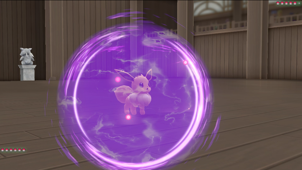 Evoli greift das Ziel gnadenlos mit telekinetischer Energie an. Dabei wird eine geheimnisvolle Wand erzeugt, die Spezial-Attacken des Ziels abschwächt.
