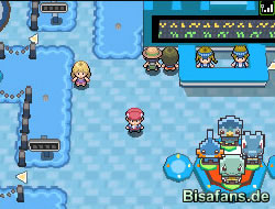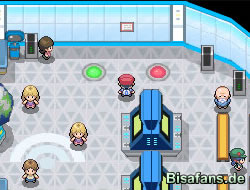 Dann gibt es noch andere kleine Mini-Minispiele. Bei dem einen kann man die Fußabdrücke der Pokémon, die man in seinem Team hat, auf ein Papier stempeln. Die Füße hüpfen dann immer in lustigen Posen davon. Außerdem gibt es noch einen Globus, der offenbar eine ähnliche Funktion hat wie der alte Globus aus Diamant und Perl in der GTS. Dann gibt es noch ein Umfragecenter. Das funktioniert ähnlich wie der Meinungskanal.