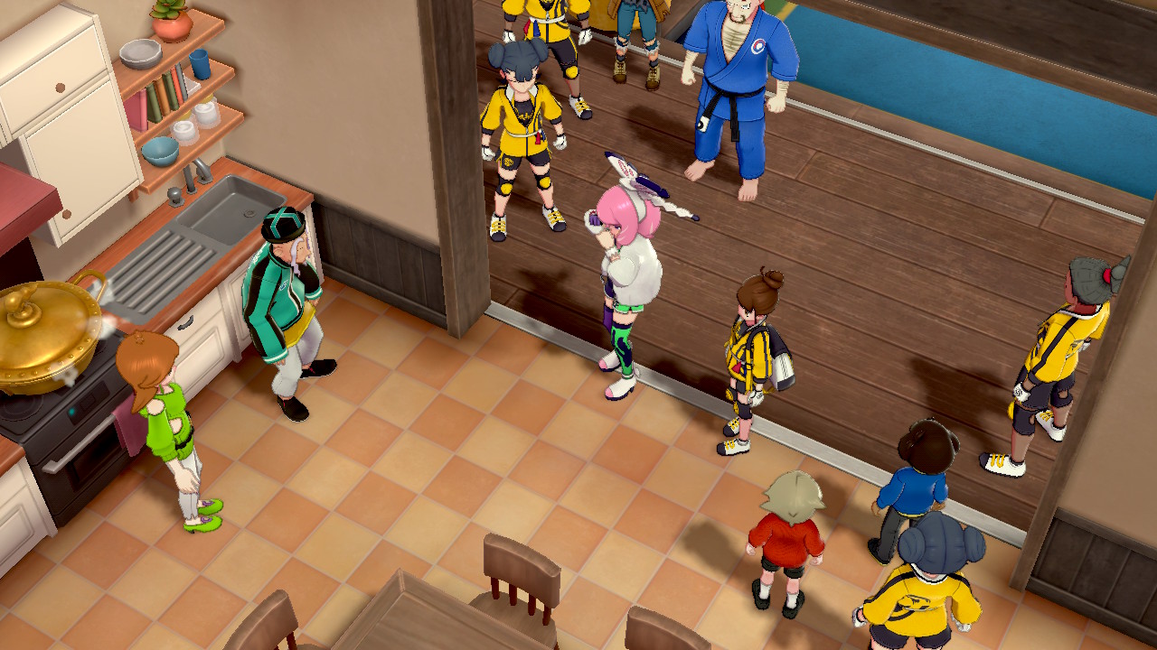 Nach dem Sieg schenkt uns Mastrich ein Dojo-Set, das wir sogleich anziehen und somit passend zu den anderen Dojo-Schülern gekleidet sind. Er erklärt uns, dass mit uns die maximale Schüleranzahl erreicht sei und dass das Training losgehen könne. Genauer geht es um drei Prüfungen, die die Schüler abschließen sollen, um am Ende die Geheimrüstung zu erhalten. Er verrät dabei nicht, worum es geht, jedoch schaltet sich Sophora ein, dass sie trotz ihrer längeren Anwesenheit als wir noch immer kein Dojo-Set erhalten habe. Als Mastrich ihr ein Set geben möchte, wird dieses von drei flinken Galar-Flegmon entwendet. Nach der ersten großen Verwirrung und den bereits getürmten Flegmon erklärt Mastrich, dass die erste Aufgabe darin bestehe, diese drei Flegmon zu besiegen und nebenbei Sophoras Dojo-Set wiederzuerlangen.