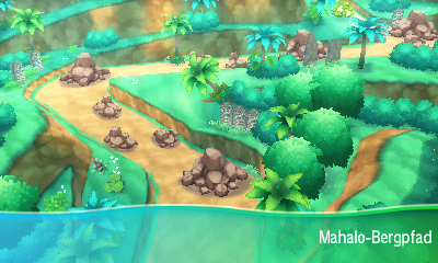 Spricht man rechts unten in der Stadt die Frau links von den vier Flegmon an, begleitet diese einen zum Mahalo-Bergpfad, der gespickt ist von großen Felsen. Diese können jedoch mit Hilfe des Tauros-Rammbocks zerstört und so ein Weg freigelegt werden. Am Ende dieses Pfades begegnet man schließlich Mr. Mystery, der für den erfolgreich zurückgelegten Weg drei