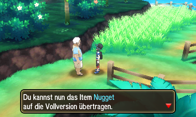 Nugget, welches später auf die Vollversion von Pokémon Sonne und Mond übertragen werden kann.