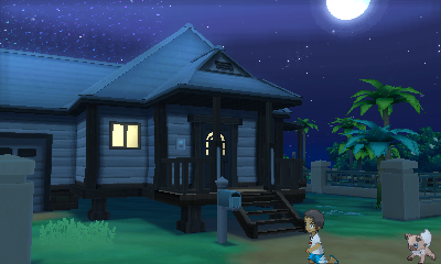 Dort angekommen könnt ihr eurer Mutter euer Starterpokémon vorstellen und geht anschließend schlafen. Am nächsten Tag ist eure Mutter noch immer mit dem Umzug beschäftigt. Auch dieses Mal wieder klingelt es an der Tür. Geht also dorthin, um die Tür zu öffnen und Professor Kukui hinein zu lassen, der euch abholt, um zum Fest in Lili’i zu gehen.