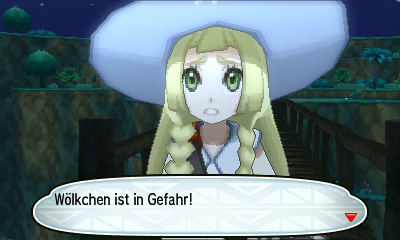 Ihr findet euch zunächst auf dem Mahalo-Bergpfad wieder, dessen Weg ihr einfach folgen könnt. Kurz bevor ihr den Gipfel erreicht, begegnet ihr wieder dem blonden Mädchen – ihr seid also auf der richtigen Spur! Auf der Spitze des Bergpfades seht ihr schließlich, was sich in der Tasche des Mädchens befand: Sie hatte die ganze Zeit ein Cosmog dabei, welches ihr den Weg gewiesen hat. Dieses jedoch wird nun auf der Brücke von drei Habitak angegriffen, die das kleine Pokémon gesehen und angegriffen haben. Nähert ihr euch dem Mädchen, bittet es um Hilfe, da „Wölkchen“, so nennt sie das Cosmog, in Gefahr ist und sie es nicht retten kann, da sie Höhenangst hat. Erklärt euch also bereit zu helfen und betretet die Hängebrücke. Sie ist an einigen Stellen etwas marode, weshalb der Weg zu Cosmog sehr erschwert wird. Habt ihr es nahe genug zu dem Pokémon geschafft legt ihr euch schützend über es. Jedoch werden die Attacken der Habitak zunehmend stärker, weshalb Cosmog schließlich einen starken Energiestoß freisetzt und die Habitak verscheucht, gleichzeitig aber auch die Brücke zerstört auf der ihr euch befindet. Ihr fallt plötzlich ungebremst in Richtung des reißenden Flusses, bis schließlich ein leuchtender Punkt aus dem Himmel kommt und sich euch nähert. Es stellt sich heraus, dass