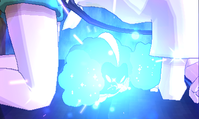 Glitzerstein, welches Cosmog gefunden hat. Sie bittet euch anschließend darum niemanden etwas von Wölkchen zu erzählen und sie bis zum Dorfplatz zu begleiten, damit ihr nichts mehr passieren kann. Geht den Weg zusammen zurück, bis ihr auf Professor Kukui stoßt.