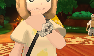 Nachdem das Pokémon von Tali besiegt wurde, erreicht euer Pokémon Level 6. Er freut sich anschließend über den Kampf mit euch. Auf einmal blinkt jedoch etwas in eurer Tasche – der Glitzerstein, den ihr zuvor auf dem Mahalo-Bergpfad gefunden habt. Hala, der Inselkönig, bitte euch darum ihn untersuchen zu dürfen und nimmt den Stein für einen Tag an sich. Offenbar scheint es eine Besonderheit zu sein, dass