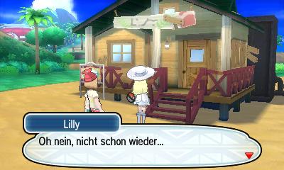 Auch an diesem Tag lässt die Türklingel nicht lange auf sich warten. Geht also von dem Balkon zur Tür und begrüßt Lilly, die euch vor der Tür trifft. Sie wurde vom Professor geschickt und soll euch zu Professor Kukui bringen. Folgt Lilly also nach links unten und überquert die Route indem ihr zunächst dem vorgegebenen Weg nach rechts folgt und das Item