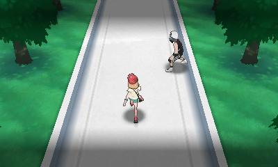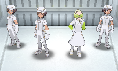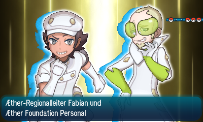 Im Anschluss auf den Kampf taucht Pia vor euch auf, die Gladio wiedererkennt und sich freut ihn zu sehen. Sie heilt schließlich eure Pokémon. Sie erzählt euch, dass Lilly bei der Präsidentin Samantha sein muss. Geht zusammen mit den anderen beiden nach oben in Richtung des großen Tores. Ihr trefft dort erneut auf Fabian, der Verstärkung mitgebracht hat. Er will euch davon abhalten durch das Tor zu gehen und gibt seinen Helfern den Befehl euch zum Kampf herauszufordern.