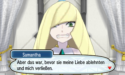 Sie verschwindet schließlich durch ein Portal am Ende des Raumes. Folgt ihr dadurch und stellt sie zur Rede. Auch Tali und Gladio treffen schließlich auf euch und nun wird noch etwas Anderes klar: Gladio ist der Sohn von Samantha. Trotzdem ihr früh genug da wart, habt ihr nicht die Chance die Präsidentin davon abzuhalten die Ultrapforten zu öffnen. Überall auf Alola erscheinen schließlich Ultrabestien und fordern die Inselkönige heraus. Um den Plan zu stoppen, ist es nun eure Aufgabe Samantha im Kampf zu besiegen.