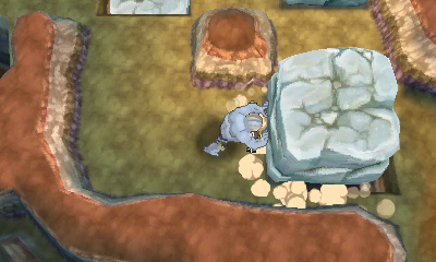 Folgt dem Weg nach rechts und besiegt die Trainer auf dem Weg und zerstört mit dem Tauros-Rammbock die Steine im Weg. Krabbelt durch das kleine Loch in der Wand, um dahinter ein Elixier zu finden und geht anschließend über den Sprung-Absatz nach unten, um dort hinter den Steinen einen Top-Trank aufheben zu können. Verlasst den Raum durch den Ausgang links unten.