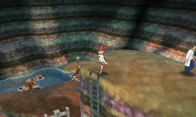 Lauft anschließend zurück und geht dann links über die Brücke. Ihr trefft dort Lilly wieder, die euch gefolgt ist. Sie stellt sich eine eigene kleine Prüfung: Sie will ihrer Höhenangst trotzdem und die hohe Brücke überqueren. Sie nimmt schließlich all ihren Mut zusammen und schafft es ihr Ziel umzusetzen. Sie heilt auf der anderen Seite der Brücke eure Pokémon.