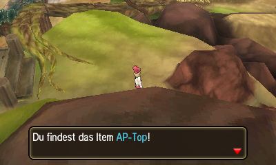 Geht in Richtung des Eingangs des Canyons und kriecht unter den Sträuchern links hindurch. Dahinter könnt ihr das Item Top-Trank finden. Geht anschließend zu Lilly. Sie schenkt euch einen Top-Beleber, damit ihr den Canyon gut erkunden könnt und heilt eure Pokémon. Betretet anschließend die Höhle zum ersten Mal.
