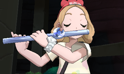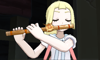 Beim Podium angekommen, trefft ihr Hapu’u und Lilly wieder, die zunächst eure Pokémon heilen und schließlich das Podium erklimmen wollen. Geht also die Treppe hinauf und stellt euch zusammen mit Lilly auf die vorgesehenen Sockel im Wasser. Zusammen mit Lilly spielt ihr nun beide Flöten.
