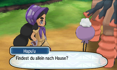 Superschutz, sowie die TM88 Schlafrede auf der unteren Seite der kleinen Fläche. Wieder zurück auf Route 6 könnt ihr weiter dem Weg folgen, bis ihr auf Hapu trefft, die von zwei Team Skull Rüpeln aufgehalten wird. Sie bittet euch einen der beiden Rüpel zu besiegen, während sie den anderen übernimmt. Helft ihr gegen ihre Gegner zu kämpfen und besiegt den Team Skull Rüpel, der euch bereits auf Mele-Mele über den Weg gelaufen ist.