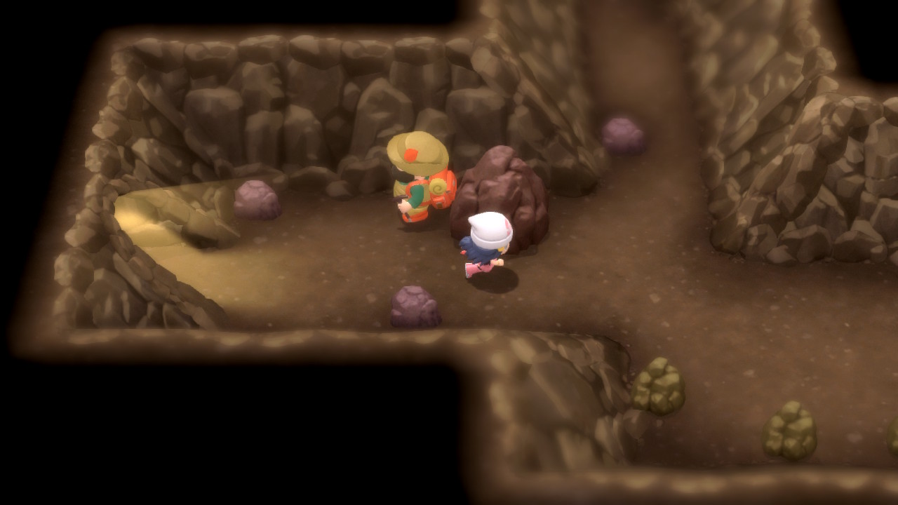 Der Weg führt nun weiter in die Erzelingen-Mine, in der sich Veit befinden soll. Neben einigen wilden Pokémon und kampfbereiten Arbeitern können wir ihn hier tatsächlich vorfinden. Er demonstriert uns die Attacke Zertrümmerer, stellt sich uns vor und lädt uns daraufhin ein, in seiner Arena vorbeizuschauen. Dem wollen wir doch gleich nachgehen!