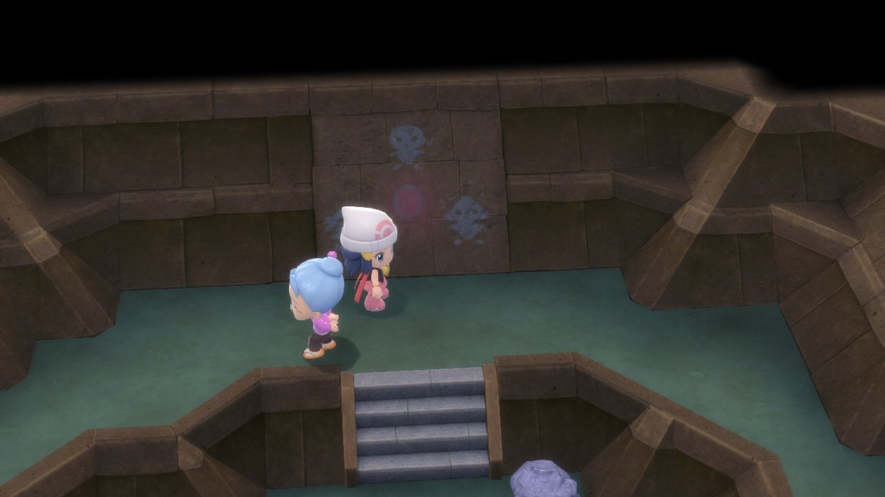 Nachdem er zur Besinnung gebracht wurde, hält er von seinem Vorhaben ab und wir können beruhigt aufatmen. Die ältere Frau gesellt sich zu uns und sie stellt sich als Cynthias Großmutter dar, der wir den Talisman überreichen. Daraufhin erhalten wir die TM95 Surfer und können nun bald über das Wasser surfen. Zuvor sehen wir uns aber noch die geretteten Ruinen an. Auf einer Wandtafel befindet sich eine Zeichnung dreier Wesen, die wohl das Legendäre Pokémon, das Sinnoh erschaffen habe, im Zaum halten.. Ob das alles vielleicht mit den Seen in Sinnoh zu tun hat? Wer weiß. Bei Verlassen der Ruinen begegnen wir erneut Zyrus, der nach der Macht des Legendären Pokémons sucht, um sein Vorhaben umzusetzen. Wer ist dieser mysteriöse Typ bloß und warum macht er so einen schläfrigen Eindruck?