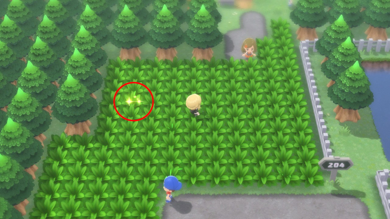 Führt ihr die Kette weiter, erhöht sich mit jedem gefangenen Pokémon die Chance auf ein Schillerndes Pokémon. Nach 40 Pokémon in einer Kette erhöht sich die Chance nicht weiter und bleibt bei 1:99. Sollte sich ein Schillerndes Pokémon hinter einem Grasbüschel verstecken, glänzt dieses golden. Haltet somit stets nach einem goldenen Busch Ausschau und betretet dieses, wenn ihr eines seht!
