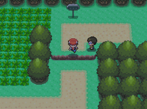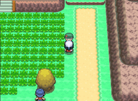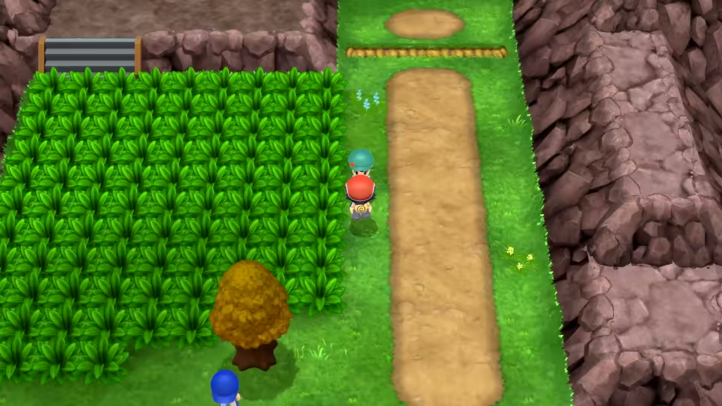 Recht früh trifft man in Zweiblattdorf auf seinen Rivalen Barry; dieser ist wie immer sehr sehr stürmisch unterwegs und rennt euch auch im Remake fast über den Haufen. Er wohnt nach wie vor in dem Haus links oben im kleinen Zweiblattdorf, das sein Aussehen kaum verändert hat. Das Gras neben den Häusern scheint jedoch etwas weniger einfarbig zu sein, da es kleine Grasbüschelchen und Blümchen erhalten hat.
